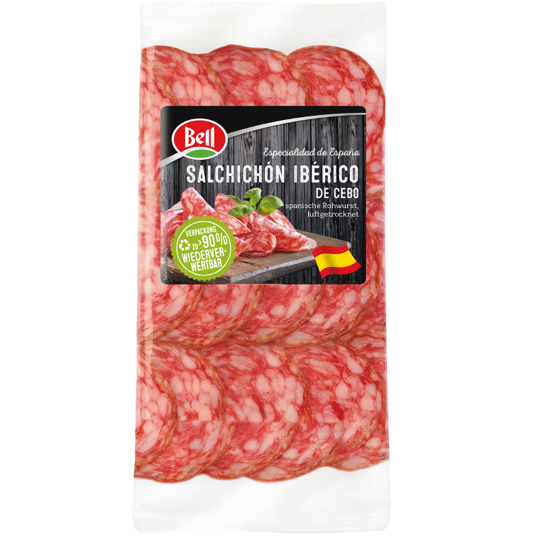 Schweinefleisch (vom Ibérico- Schwein), Speisesalz, Dextrin, Erbsenprotein, Gewürze, Dextrose, Emulgator: Polyphosphate, Farbstoff: Betanin, Antioxidationsmittel: Natriumascorbat, Konservierungsstoff: Natriumnitrit. 100g Salchichón werden aus 148g Schweinefleisch (vom Ibérico- Schwein) hergestellt.