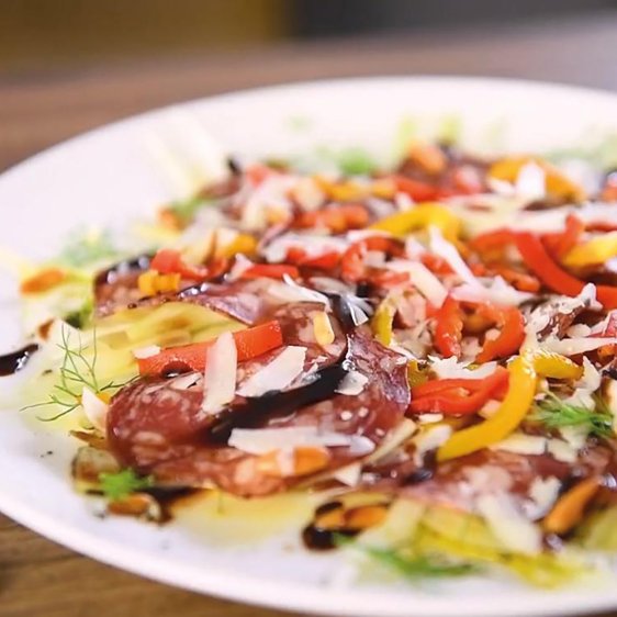 Fenchel Carpaccio mit Salchichón Ibérico de Cebo