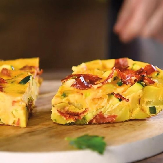 5. Zum Schluss die Fritatta etwas abkühlen lassen, in Stücke schneiden und mit der Petersilie garniert servieren. Schmeckt kalt und warm.