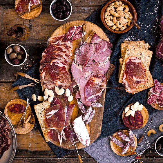 Für die restlichen Tapas können Sie wahlweise in kleinen Schüsseln oder auf Tellern Chorizo, Salchichón, Oliven und Weißbrot anrichten.